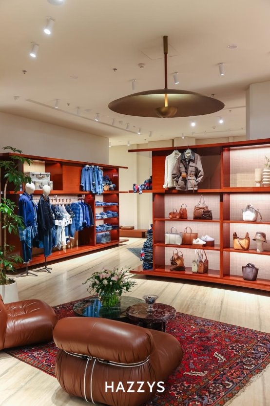 本层空间重点呈现两大新系列:HAZZYS blue 牛仔系列作为26SS主推,以6大版型与低饱和色彩重塑日常穿搭;同时特别呈现新天地旗舰店独家限定系列,该系列以深邃色彩与修身剪裁,在延续英伦内核的同时探索当代风格,目前仅于旗舰店发售。